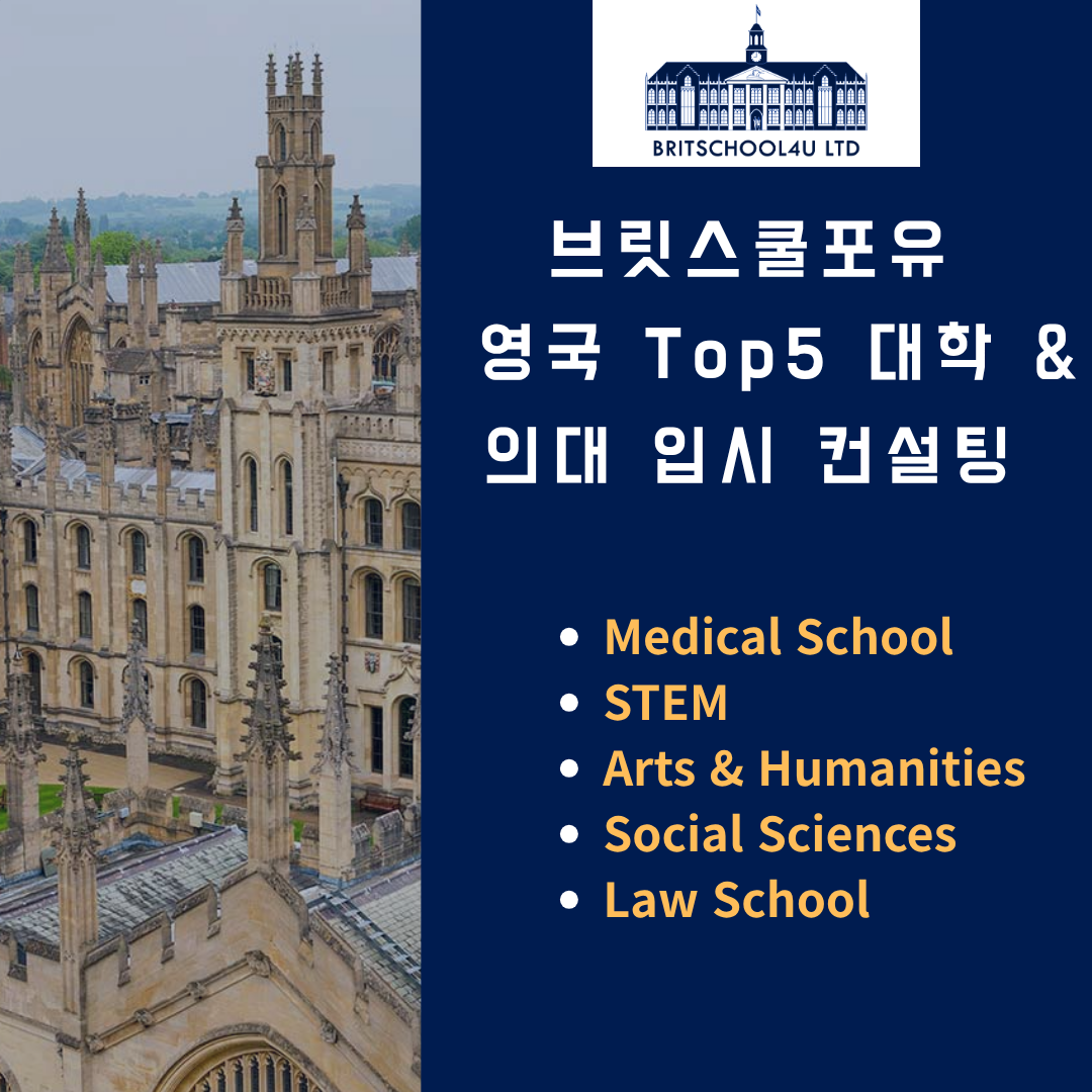 브릿스쿨포유는 영국 Top 5 대학과 의대 진학을 준비하는 학생들을 위한 맞춤형 입시 컨설팅을 제공합니다.